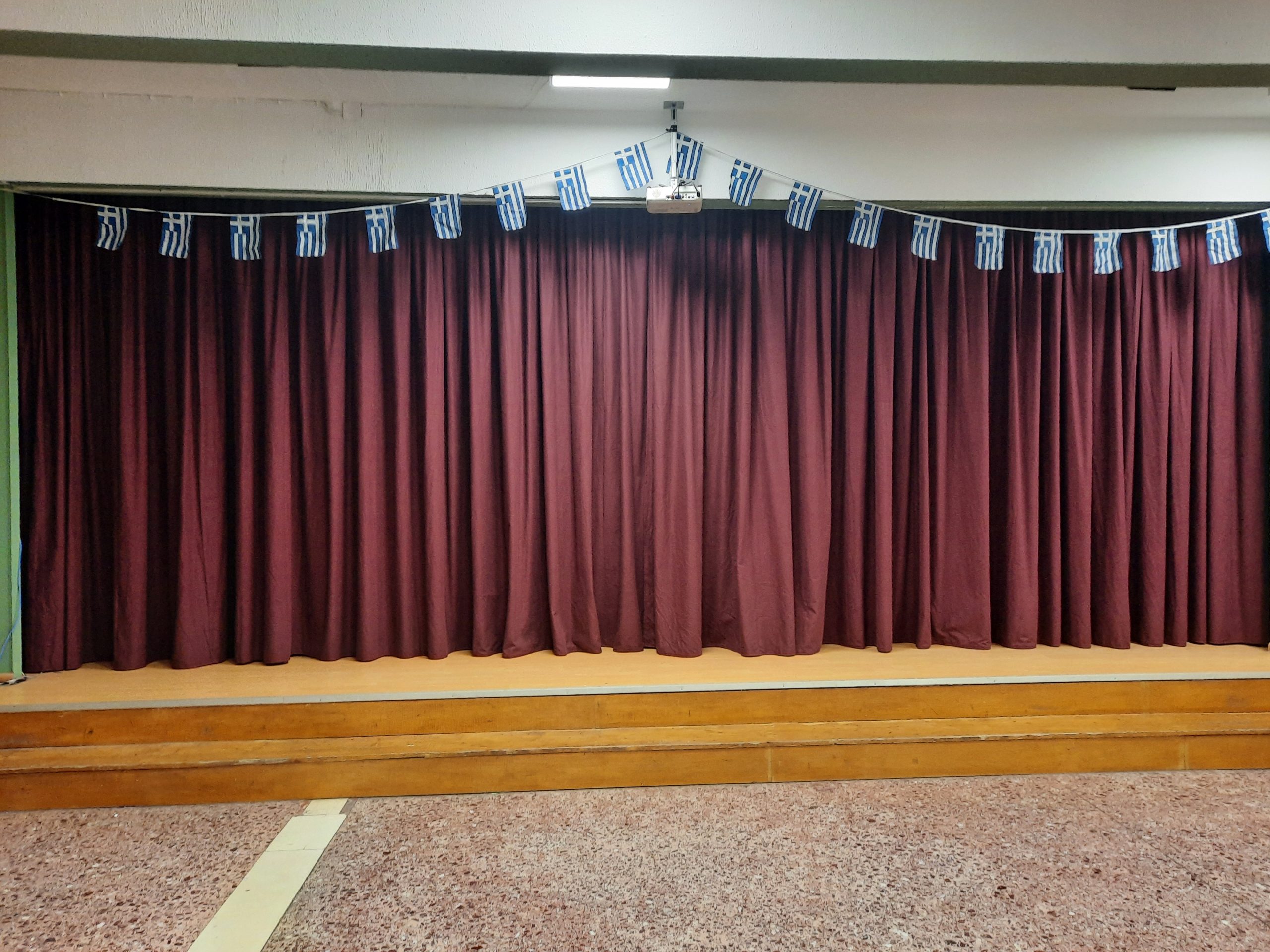 Η Αίθουσα Εκδηλώσεων είναι ένας μεγάλος ενιαίος χώρος 160 τ.μ. στο ισόγειο του σχολείου μας που δύναται να φιλοξενήσει περίπου 230 μαθητές. Είναι εξοπλισμένη με ηλεκτρονικό υπολογιστή και βιντεοπροβολέα, με μικροφωνική εγκατάσταση και ισχυρά ηχεία ικανοποιώντας τις ανάγκες για τη διεξαγωγή εορτών, ημερίδων, ενημερωτικών συναντήσεων με γονείς, μαθητές ή καθηγητές, ακόμη και προβολών σε μεγάλο αριθμό μαθητών.